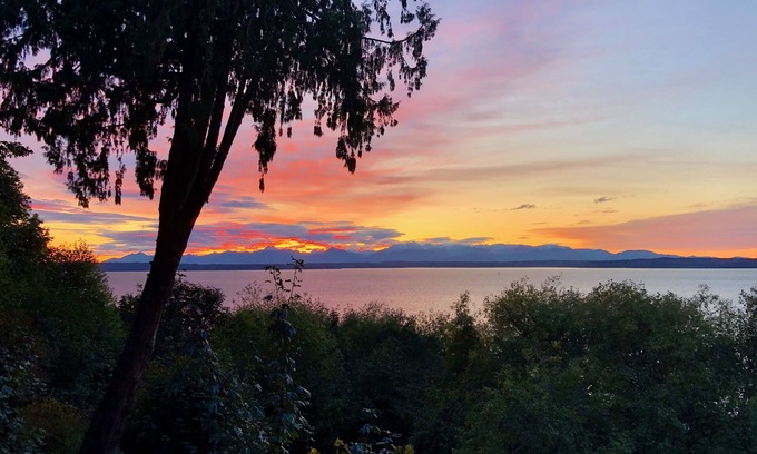 You literally do not even see another neighboring house from either indoors or your patio! Instead it is all 180 degree sweeping views of nature, sea, and the Olympic Mountains, plus one or two tall cedar trees.