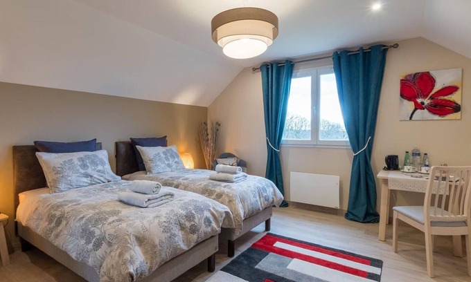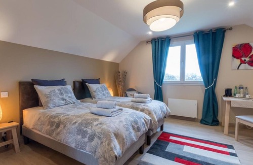 Table d'hôtes: €25/person, reservation required. Double room with two 90x200cm beds (can be joined together), and 1 additional person can be accommodated with a 90x190cm fold-away bed. Private bathroom (walk-in shower) and separate toilet.