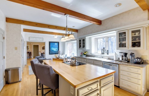 A living room, a fireplace, air conditioning, and a ceiling fan are featured at this 5-bedroom, 4.5-bathroom rental. Enjoy the free WiFi and TV. Prepare a home-cooked meal in the kitchen, complete with an oven, a stovetop, and a dishwasher, as well as an ice maker, a microwave, and cookware. And because there's a washing machine, you can go a bit lighter on your packing. Other amenities include bed sheets and an ironing board.