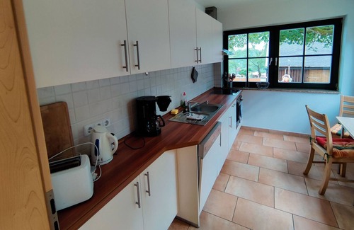 This spacious holiday home is located in the municipality of Friedrichshöhe, a district of Eisfeld. The house has all the amenities you need and a wood stove in the living area creates a cosy atmosphere. The terrace and garden are the perfect place to sunbathe or have a barbecue. Friedrichshöhe is located directly on the "Rennsteig" ridge trail within the Thuringian Forest, also known as the "Green Heart" because of its central location in Germany. The place was once the smallest community in the GDR and has now been turned into the "Thuringian Forest" nature park, therefore being spared from hotels and tourist facilities. Here you will find rest and relaxation in a fantastic, unique and natural environment. You can enjoy the stunning, almost unspoiled nature here in both summer and winter. Well-marked hiking trails are sure to excite any nature lover. Cyclists will also find a wide range of appealing routes, such as the Werra cycle path. In winter, well-groomed cross-country ski trails, groomed slopes, ski hiking trails and toboggan slopes round off the list of attractive activities. Excursions in the area include: Eisfeld Castle with museum, Veste Coburg, ruins of Schaumburg, Lauscha, Masserberg, Lichtenhain/mountain railway.