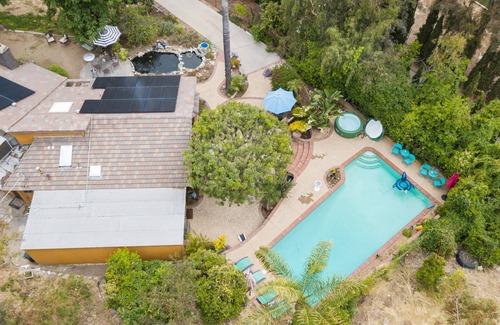 This home is surrounded by sunshine, nature, a massive pool, a hot tub, green mountain views in every corner of the room, and the serene cascading sounds of the waterfall in the Koi pond. Minutes to Warner Bros Universal Studios Tour, Griffith Park, LA Zoo, Dodger Stadium, DTLA, and 20 mins to Hollywood. You can find cypress and palms, horses, wildlife, trails, and golf courses around the area!