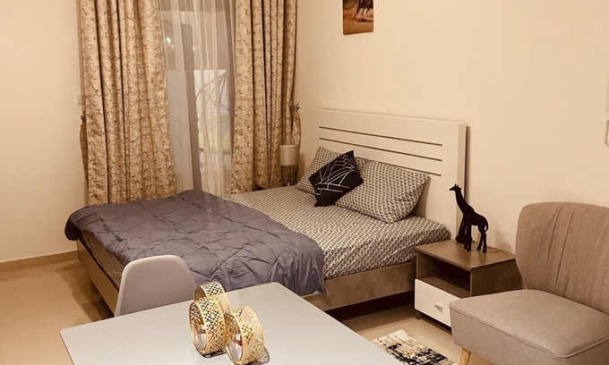Beautiful studio apartment in a premium community with a garden. Propery also has shared gym and pool. Property is a walk away from city center and is located near to univeersity of Sharjah. Food street is 5 min away by walk