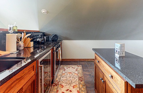 Inside the loft, you'll find a well-equipped kitchen with all the essentials, including a stove, oven, microwave, coffee maker, and more. Relax in the living room area with a TV and DVD player, or head outside to explore the beautiful surroundings or stay in and play board games and relax.