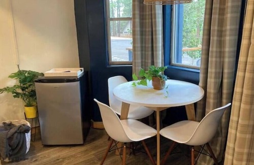Spacious Studio, Large Deck w/Firepit, couch and seating; Huge shower is located in Ponderosa Trails. Spacious Studio, Large Deck w/Firepit, couch and seating; Huge shower provides accommodation, featuring Parking, Bedding/Linens, Fireplace/Heating, among other amenities. This Apartment features Parking, Bedding/Linens, Fireplace/Heating, to make your stay a comfortable one.