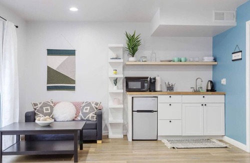 Welcome to a newly renovated, very large studio suite set in a bright private space full of light and charm. This is a wonderful place to unwind featuring an open-plan living space, modern decor, and furnishings including a new kitchenette, and brand new hardwood floors throughout.
