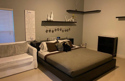 Unwind in Pembroke Pines at this delightful Studio. This cozy retreat features 1 king bed and a sofa bed, perfect for small groups or couples. The whole group will enjoy easy access to everything from this centrally located, family friendly, gated community place. Just 15 minutes from Miami and only 30 minutes to the beach with shopping centers and malls just blocks away. Completely Private 300 S/f Studio attached to the home but with private entrance, nice patio great for kids, king size bed, large closet and a spacious beautiful master bathroom will make you time here very special