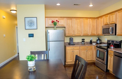 → Fully equipped kitchen with pots, pans, dishes, utensils, salt+pepper, coffee, tea, & creamer