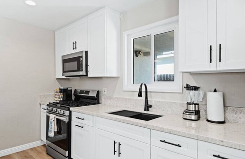 Located at the back southwest corner of the home, this private suite is separated from the rest of the house. We recently renovated the entire space and everything is brand new, including an in-unit washer-dryer tower! It's a cozy, bright space that has all the essentials for relaxing on vacation, or providing that focus needed to get ahead on work. This is a perfect spot to call home as you explore all the memorable places that San Diego has to offer - beaches, downtown, shopping, the tech sector, SeaWorld, the San Diego Zoo, and much more!