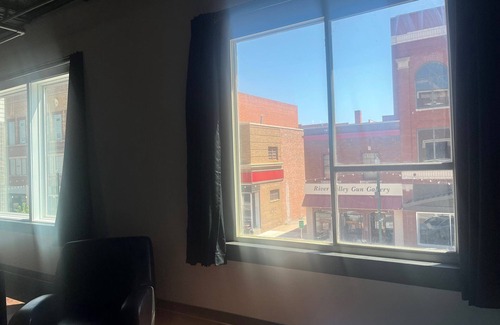 Unwind in North Platte at this fabulous downtown apartment. With Elevator Access. This large studio features 2 queen beds and a pull out queen sofa to sleep 6 people. Well-equipped bathroom with a relaxing bathtub, and a shower, charming living room with 3 large windows for great views of Downtown. Enjoy the convenience of amenities like heating, WiFi, a washing machine, AC, Dishwasher, 2 televisions, and a hair dryer. Whether you're here for a weekend getaway or an extended stay, this wonderful apartment is the perfect home base for your adventures. We look forward to welcoming you to our place. Its right above many downtown events such as Music on the Bricks. Espresso Coffee Shop, 2 Steak Houses, Mexican Food, Sushi, Taverns, and Shopping all within walking distance. New build, we are excited to share this great space with you.