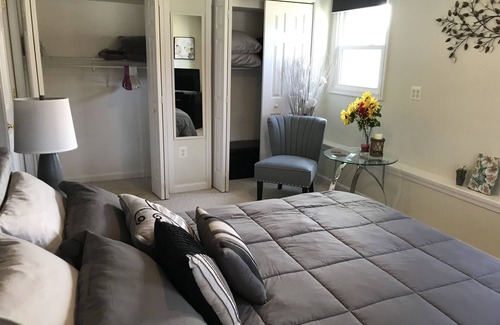 Has large bedroom, living room, full bathroom, and kitchenette with on-site parking. Plenty of amenities for you to enjoy during your stay including 4K smart-TV with cable box, cable TV in the bedroom, and 1GB Internet WiFi. Looking forward to hosting you!