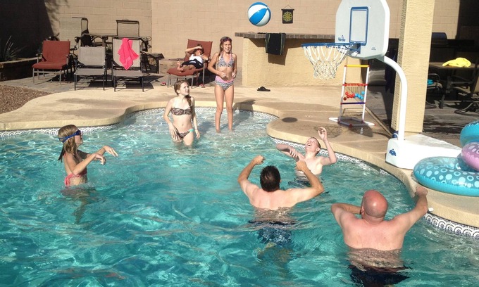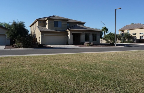 My 4 bedroom home is situated in a quiet area of Surprise Arizona, a Phoenix suburb, facing a beautiful park and playground. The south west facing back yard includes a covered patio, BBQ area, fire pit, and a spacious heated pool.
