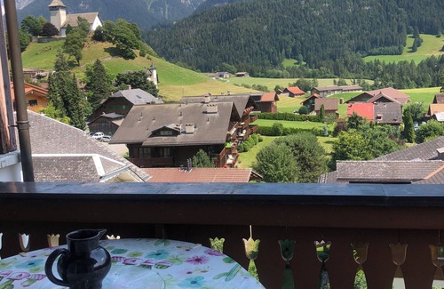 Light and spacious flat with very large living/dining area, two balconies and lovely views towards Chateau d'Oex church and the mountains above. Peaceful and quiet location with easy access on foot to the town and all amenities including swimming pool, mini golf, bowling, play park, tennis courts, ice rink, cinema and restaurants. Ski slopes are just a 10 minute drive or train ride away.