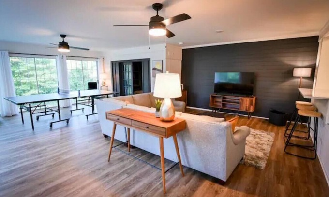 Cozy home privately nestled right off of the Covington square- walking distance to all shops and dining! Guaranteed to make you feel like you're living in a Hallmark movie. Safe area, great neighbors, ping pong table, and movie theater room with surround sound! We are located in the most desirable area of Covington :) Huge home, family friendly, equipped with high chair and pack & play! High speed internet with office space available to easily work remote!