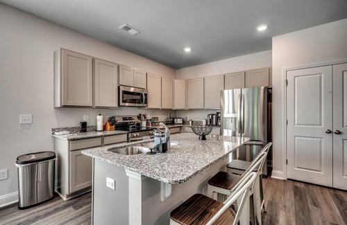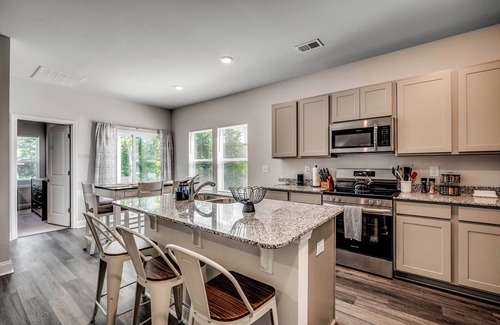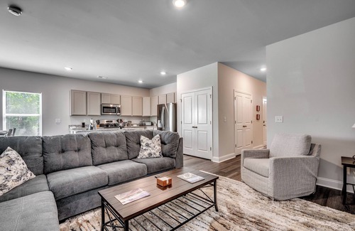 Golf, dining, shopping and local attractions near by. Open concept living, dinning and fully equipped kitchen for easy meal prep. The Primary is on the first floor with it’s own ensuite. 2 BRs upstairs share a bath. The 2nd living room features a pullout queen and twin. This new home has high speed internet and Smart TVs. Covered Patio with seating and ample parking. Near 90/Robert Edge Parkway/31. There is an external security system. 25 yr age min. to rent. Enjoy your stay.