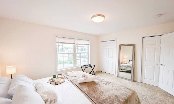 Best-rates for the Spacious Townhouse in Schenectady-B9 starts from $411 per night with includes Fireplace/Heating, Internet, Kitchen, Air Conditioner, Security/Safety, Bedding/Linens, Wellness Facilities, Child Friendly, Laundry, Parking with all other amenities. Perfect for Weddings is committed to ensuring every guest experiences a comfortable and extraordinary stay, whether planning a romantic getaway, a honeymoon, a pet-friendly stay, or celebrating with the entire wedding party.
