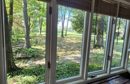 Fabulous Townhouse located in the mall area for shopping. We call this our 80's baby, it is dated and has a is not perfect. However it feels like home away from home. So very comfortable. The sunroom being the favorite room in the house with a beautiful view of the landscape yard and backing up to the 10th hole on the Country Club golf course. This is a very desirable area in paducah. You will have many restaurants to choose from. Including some of the best Local Owned Restaurants Bar-B-Q , Pizza, Seafood, Farmhouse style to many to name. This is a very desirable area in Paducah. Just being 5 min from the airport. Gym'S, Cinemark . A movie or choose the Maiden Alley Cinema downtown. A very short drive to the historic riverfront downtown area is the Art District and the Quilt Museum. Local Brewery, coffee house, Living space is all on main level, with a open & split floor plan. The sunroom is my favorite room in the house. Relaxing and enjoying the beautiful view of the mature trees, and the golf course. The kitchen & dining stocked with cookware, Utensils, wine glasses. A parlor table in front of fireplace. And lots of windows in the kitchen to enjoy your coffee in the mornings. A nice cozy family room to catch a movie. The masterbedroom has large bathroom with walk in closet. The 3rd bedroom has a built-in desk. There is a seating area in the back yard. Garage for parking. and 2 additional parking spots with turnaround in front.