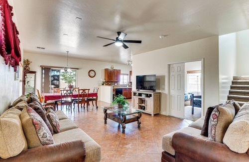 Boasting sweeping views of the surrounding desert landscape, this stunning home offers the ideal oasis for large families and groups visiting Tucson, AZ. Spend sunny days golfing and exploring the outdoors, visit loved ones at the University of Arizona, or try your luck at a nearby casino! After your Southwest adventures, you can return to this 5-bedroom, 2.5-bath vacation rental to prepare dinner in the full kitchen, relax by the Smart TV, and stargaze in the enclosed backyard.