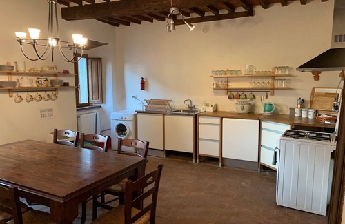 Located in the heart of a thriving medieval hilltop village our spacious house has stunning views of the Apuan Alps from the large roof terrace. Traditional features such as chestnut beams and a woodburning stove are complemented by modern conveniences.