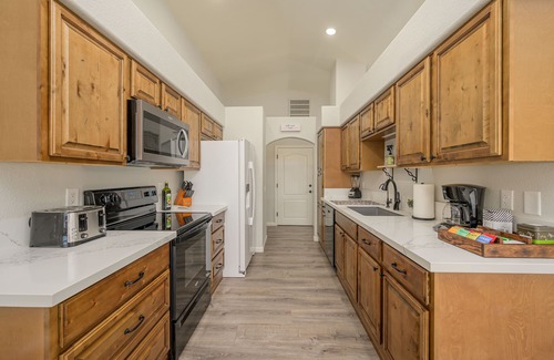 Comfortable and family friendly, featuring leather seating, all wood furniture, hardwood flooring throughout, and new cabinets and lighting. Entertainment amenities include all Smart TV's and DVD players. Enjoy movies on the 65" TV in the living room, and the bedrooms all feature 43" TV's. There are also some movies, games, and books for children and adults.