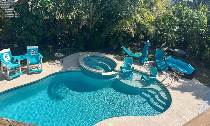 - 10 Beds/Private Tropical Pool/4Bikes/Beach Gear/Grill/Walk to Beach & Pickleball