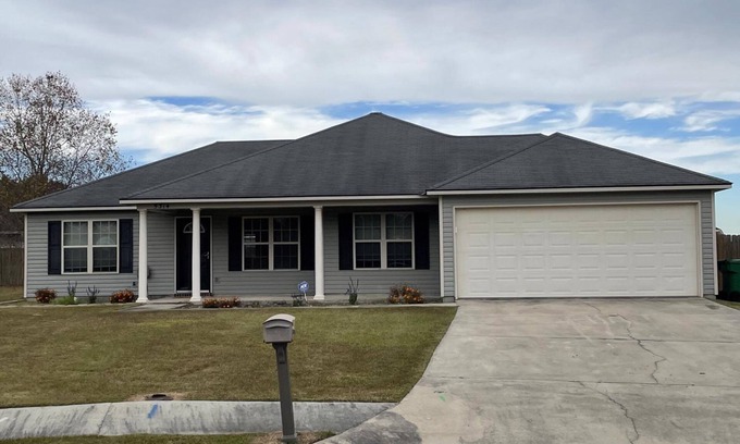 The Spacious Valdosta Getaway is located in Branch Point and boasts over 1,372 sqft. The home is located in a quiet residential neighborhood with a large fenced in back yard. The open floor plan makes this home the perfect location for getting together with friends and family. There are 4 bedrooms, 2 bathrooms, Kitchen, living room, laundry room and garage all at your disposal. If you want to bring along your well behaved pooch, the large fenced in backyard will give your furry friend plenty of room to run and play. The kitchen leads out to a modest patio with a propane grill and room to sit. If you're in the mood for roasting marshmallows or telling fish stories the firepit in the backyard is the ideal location.