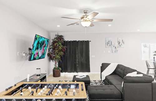 Bring the whole family to this great place with lots of room for fun. Conveniently located not far from the strip(9miles) and airport (7 miles), many restaurants and shops around for anything you need. This house comes with a fully equipped and spacious kitchen, a big backyard, very spacious rooms for the whole family, each room and living room has a tv, foosball table for family fun time, wifi and more! house is: