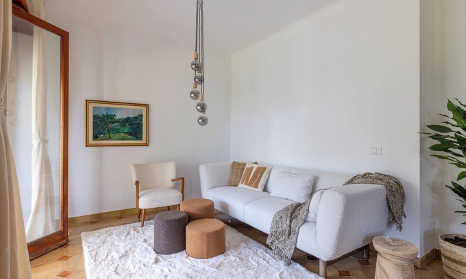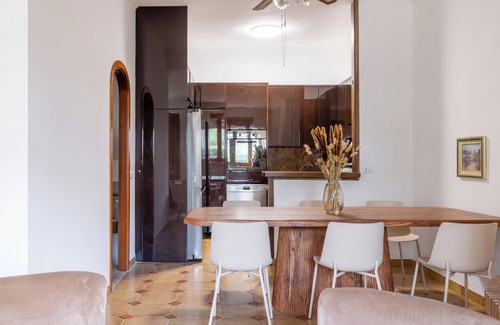 The garden is ideal for outdoor dining, with a covered patio, outdoor table, barbecue and wood-burning oven, to enjoy the warm Roman evenings in total relaxation.