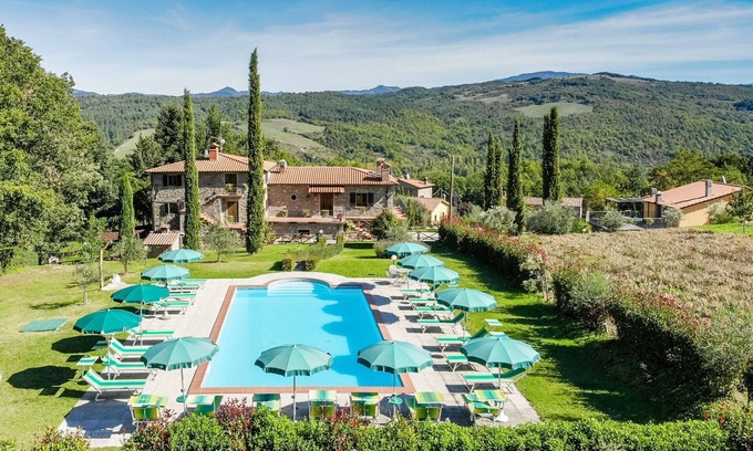 Experience a romantic escape at the Spacious Villa with Private Pool in Tuscany, nestled in the tranquil Valtiberina countryside. With ample accommodations and breathtaking landscapes, this villa is the ideal venue for unforgettable wedding stays.
