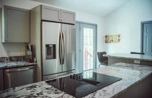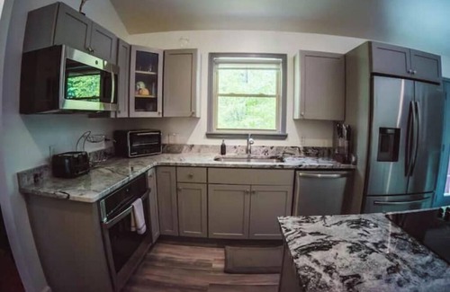 Located on a quiet cul-de-sac with a wooded view from the backyard, this property is a modern four-bedroom, two-bathroom cabin-home hybrid that can comfortably accommodate up to 12 guests. The location is perfect for climbers, hikers, and tourists, with Red River Gorge, Muir Valley, Natural Bridge Park, and many other outdoor attractions (ziplining, kayaking, off-roading, horseback riding) all only a short drive away. Come home after a day of adventures to a relaxing hot tub, a modern, fully equipped kitchen and a grill. With a spacious master suite and loft perfect for children, this property is ideal for a luxurious vacation with family or friends. Between the firepit and large variety of backyard games (cornhole, badminton, etc.) your evenings will be full of fun. Free Wifi, washer/dryer, central AC, and YouTube TV all provided. Also available for longterm rental. Must be 25 or older to rent; adults must be present with children and teenagers at all times.