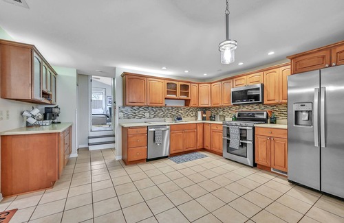 Inside, enjoy fun-filled entertainment with an air hockey table and an indoor pop-a-shot basketball station. For those who prefer quieter moments, the house is equipped with modern amenities such as Wi-Fi, air conditioning, and a fully equipped kitchen, stocked with all the essentials like an oven, microwave, rice cooker, waffle maker, a coffeemaker and more.