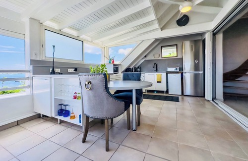Located in the tourist discrict of La Baie Nettlé, discover this exceptional two-level apartment, spacious and bright, with a large terrace offering breathtaking views of the lagoon and a swimming pool. Perfect for a family getaway, a trip with friends, or for remote work.
