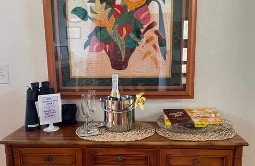 Prior to the COVID pandemic, we enjoyed hosting a wonderful variety of guests from around the world, and were able to be on the receiving end of some very nice, positive reviews! With the onset of the pandemic, however, vacation spots needed to be more! They needed to become “work from home” spots, and places where friends and family could be comfortable spending lots of time in! Consequently we updated our home to complement this new way of life. We made sure we had fast internet throughout the property, not just indoors. We made sure we had comfortable work stations available in most rooms. We made multiple comfortable seating areas under covered lanais that capitalized on our location in a peaceful neighborhood with gorgeous views. We did our best to offer an ideal “work from home” situation: a great place to be where vacation amenities are right in your rental, with no need to share with other people you don’t know. Work from home, then take a break to swim, kayak, play ping pong, pool, darts… or maybe just enjoy the outdoor tiki bar.