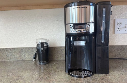 Cook & Dine in Style - Forget fighting over kitchen space—here, you have one very large kitchen with loads of cupboard storage. Includes modern stainless steel appliances, dishwasher and full set of cookware. Extras include an air fryer, crock pot, toaster, and coffee pot and coffee bean grinder, for all your cooking needs.
