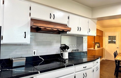 * Full kitchen, equipped with modern appliances, cookware, and coffee maker