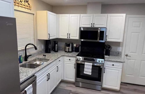 2 br 2 bth, outdoor dining & grill. Your fury friends are invited to stay with you as well =)