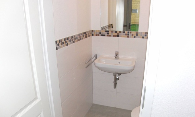 The spacious apartment is on the ground floor and is fully equipped with a kitchenette and dishwasher, a living and dining area with LCD TV incl. Radio, a bedroom with a bath area, shower and bath and a separate toilet. The living room couch is extendable and allows an extra bed for another person.