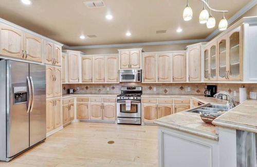 Enjoy the huge basement game room as well as the huge patio. Hard wood floors. Smart TVs everywhere! Beautiful kitchen. Plus a huge 2 car garage! This well appointed two bedroom, two bathroom home has everything you need for your visit to Lubbock. Each bedroom features a king bed, spacious closet, and bathroom. The primary bedroom also has a memory foam pull out sofa. Enjoy meals on the covered patio, cook in the spacious kitchen, or challenge your family to a game of air hockey, pop-a-shot- or foosball in the basement game room. If you are so inclined, feel free to do your laundry in the large laundry room. No matter if it is the Texas heat, a random desert rain storm, or a winter snow, your cars will be protected from the elements in the two car garage available during your stay. Check yourself in and out using our front door keypad lock. Prior to check in, please provide us with a four digit code of your choosing (make sure it is easy to remember!). On check in day, your code will be active at the front door at 4:00. You can come and go as you please. Once inside, everything is at your disposal (with the exception of several locked closets/cabinets for our cleaning team). I will not be around the listing, but will be available for any questions via messages. One of the most sought after areas of Lubbock, located near Lakeridge Country Club You can park up front and/or use the 2 car garage.