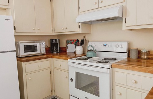Two bedroom, two and a half bathroom townhouse. The cozy living room greets you upon entry on the main floor and has plenty of space to spend time with your group. Walk through to the kitchen and separate dining area. The table can seat up to four people comfortably. The kitchen is stocked with all the cooking necessities to prepare meals at the house. There is a laundry nook with washer and dryer at your disposal. Enjoy the back patio with your morning coffee or your evening cocktail, it’s perfect for meals also.