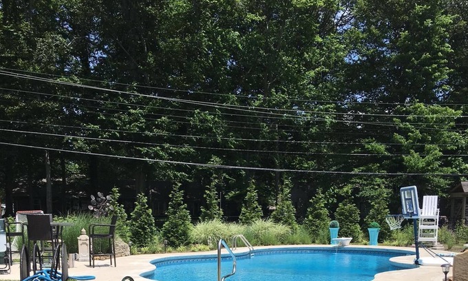 Gorgeous updated home with 2500 sf- ranch with 2 car garage, formal living room, dining room, family room, finished basement with 2 areas for entertaining and hanging out-one with bar the other a kids hang out room, , 5 tvs one 60 inch in basement and one 55 inch in family room, large backyard with grill, Great Location A 10 -13 Minute Drive To Downtown Cincinnati - close to Western Hills country club 1 full size bed and one queen size in addition to large sectional in basement family room and queen size sleeper (bean bag type ) very comfy -LUXURY $60k POOL PUT IN 2015, 25 BY 42 SIZE, DIVING BOARD - PATIO ETC