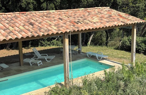 Cottage surrounded by our organic vineyards and forests. Large private terrace. Shared secluded pool. Very well equipped. Well appointed. Calm. Large room: separate kitchen from the dining room by a bar. Living room with TV and two sofas (can be used as single bed). Then bedroom, antique wardrobe, double bed and mezzanine.