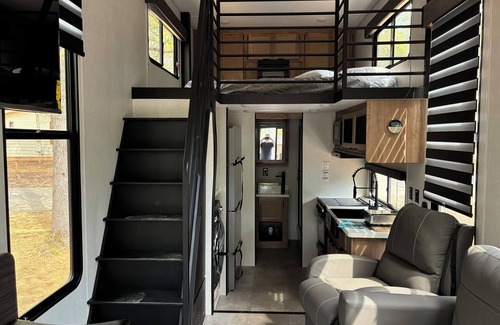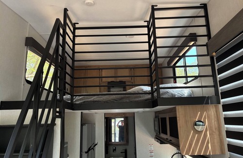 This 2-bedroom RV / Tiny Home is perfect for your escape to Springville TN. Nestled in a tranquil setting, this beautiful property offers a marvelous living room with a cozy queen bed. Master bedroom upstairs. Guests can enjoy washer/dryer, dishwasher, full shower, koi stocked kitchen, heating, and AC amenities provided. Includes a porch to relax and a fire pit for those late night marshmallows, roasting hot dogs or smores. Whether you're looking for a family trip to the Lake to fish, peaceful retreat or a romantic getaway this RV / Tiny home has everything you need for a relaxing stay. We look forward to welcoming you to our Special Place.