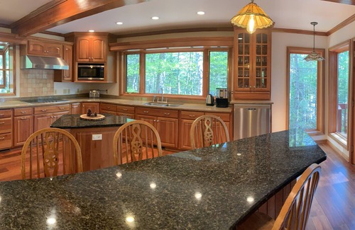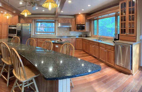 Located on over 4 acres of wooded privacy with 184 feet of frontage lake. House offers a lot of space for many guests, has 6 bedrooms and 4 1/2 bathrooms.