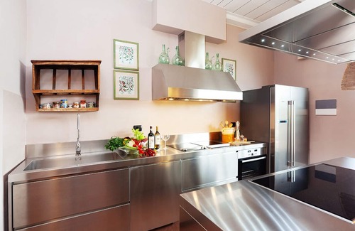 The modern equipped kitchen and the dining table are ideal for leisure time.