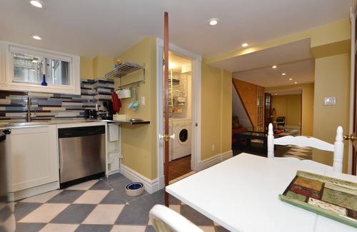 Quiet 1 bedroom pet friendly basement apartment in beautiful home in upscale neighbourhood of Leaside, Toronto. Immaculately kept, fully equipped kitchen, floor heat, high ceiling, AC and laundry room. Free parking, free Wi-Fi. Walking distance to necessities, Sunnybrook Hospital nearby. Bus stop 20 minutes to downtown.