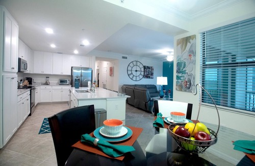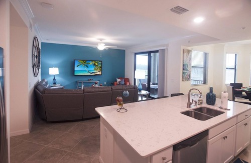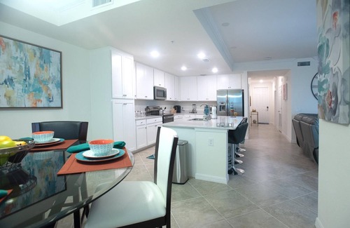This condo is named "Endless Summer"! What a beautiful new 3rd Floor Condo available for you to book at Lakewood National located in Lakewood Ranch. This one-of-a-kind Arnold Palmer designed 36 Holes Golf Course is a real champion nearly 900-acre enclave set within the 17,500 acre an award-winning master planned community. This property offers 1,232 square feet of living space 2-bedroom & 2-bathroom. I am sure your family and friends will enjoy the spacious living room, and a sleek and stylish kitchen that flows through the dining room perfect for a family meal gathering. The condo offers elegant furniture and wall accent in the living and bedrooms. Everything in the condo is brand new, the condo includes a gorgeous gourmet kitchen with extended quartz countertops features white cabinets, along with casual dining with bay windows overlooking the golf and the lake while preparing your favorite meals. Gorgeous master suite with king size bed with accent walls and two nightstands and a chest with a mounted flat screen TV your privacy. The walk-in closet is very spacious, and it has an additional closet for linens, towels etc... The master Bathroom has a large walk-in shower and quartz countertops with white cabinets. The second bedroom has two twin beds, one nightstand and a chest. It also has an extra mounted TV for your convenience. You will notice when you enter the condo, the entrance table with a mirror and elegant decorations throughout the condo. Everything brand new. Wait to see the lanai, and what a view! you will have plenty of space to enjoy the golf and lake view from the lanai and spend time with your family seating a very comfortable bench and chairs. The condo is equipped with modern electronics, and a variety of options for your favorite TV movie channels. Also, for the guest convenience the condo is equipped with smart locks. The condo also offers a separate storage room perfect to keep your bicycles, golf equipment, or anything you don t want to store inside the condo. You ll enjoy and appreciate the beautiful sunrise from the lanai and This is a perfect place for you and your family to spend your unforgettable vacation. The beautiful Lakewood National amenities is up and running the brand-new amenities will offer you an exceptional resort lifestyle. The community amenities are open state-of-the-art fitness center, lighted clay tennis courts, casual poolside dining, full-service spa, and a beautiful restaurant. You can’t miss the resort style lagoon, beauty salon among many other things. You will find plenty of space to ride your bicycles and walk. Not to mention that Lakewood National is close proximity to the beautiful #1 rated beach in the USA called Siesta Key, Anna Maria Island is approximately 40 minutes, and you can’t forget to visit Longboat Keys. You don’t even need to leave the community to have a delicious meal, you can dine in the beautiful restaurant at the clubhouse or even join your friends at the Tiki bar for casual encountering. This is a perfect place for your vacation time!