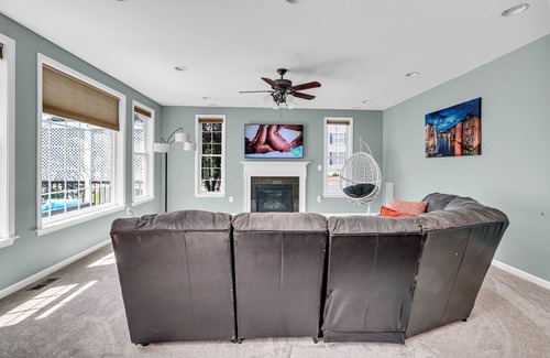 Your cozy getaway awaits in Ashburn at this enchanting house. With 6 bedrooms, including 3 king beds, 1 queen bed, and 2 full beds, there's plenty of space for all your guests. The 5 bathrooms are equipped with amenities like hair dryers and showers. You'll find everything you need here, from WiFi to a washing machine, fitness room, iron, AC, and heating. Our place is equipped for both long or short stays to make your holiday one to remember.
