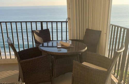 You will be mesmerized by the unbelievable rap around view. 2 bed 2 bath completely updated unit. Most of the time you will just stare out at the ocean, the sailboats, in morning enjoy your coffee watching the surfers or the evening having a glass of wine on the balcony. Great fishing off the beach or just grab your chair and enjoy the private sand beach.community is gated and lots going on. Happy hour on Fridays, golf groups, tennis, pickle ball ,fitness groups, This is the preferred south east exposure,75 feet up.The unit is flooded with sunlight(unlike the darker interior units)Every window has a view of water, Doesn’t get any better then this.All smart tv s. super fast internet(300) fully equipped new kitchen (2022) brand new middle bath (2022) king in master, queen in 2nd . 3 month minimum during season January -April 30th