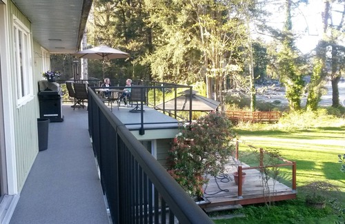 View whales and the local eagle population from the full wrap around deck on this upper level suite. Steps to the beach for easy launch of paddle boards or kayaks. Minute walks from grocery store, coffee shop, pub, restaurant craft shops and more.