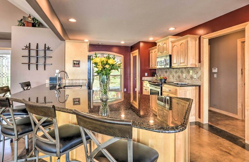 A slice of paradise awaits at this gorgeous waterfront 3-bed, 2-bath home in Afton. This luxe vacation rental features a modern interior and jaw-dropping lake views that greet you the second you open the front door. Bring your boat and dock it in the private boat slip so you can spend endless beautiful days fishing, tubing, and swimming on Grand Lake O’ The Cherokees. After a day on the lake, return to the house for a home-cooked meal and nights of jokes and laughter together on the back patio.