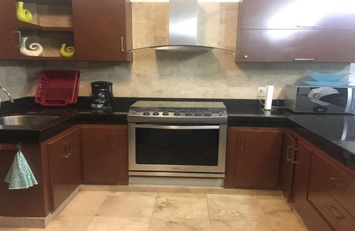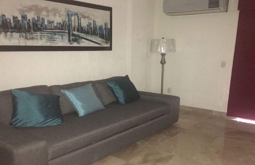 Beautiful apartment to relax and relax is a very nice and safe family area, has 2 bedrooms, breakfast room kitchen equipped with domestic utensils, microwave, blender and laundry center with dryer included, has full bathroom, maximum number for six people . It has an elevator, heated pool and places for sunbathing, has palapa with grill includes parking and 24 hour guard. located in front of the sea. beautiful views.